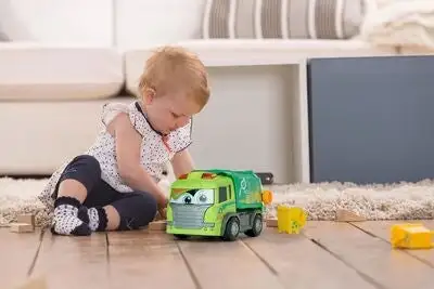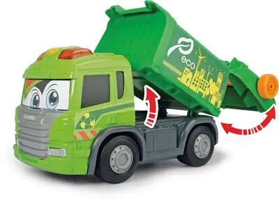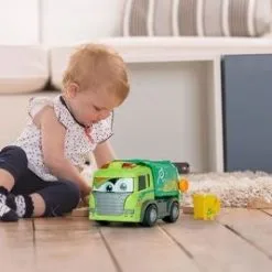 En morsom søppelbil med lyd og lys, fra ABC. Det glade utseendet, lyden og lyset fascinerer og innbyr til morsomme leker. Bilen kan kjøres frem og tilbake. Den kan åpnes, søppelrommet kan vippes for tømming – akkurat som på ordentlig! Søppelbilen har avrundede hjørner, for trygg lek.Anbefalt alder: fra 2 år.