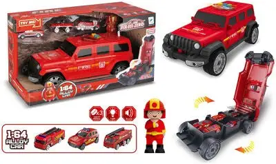 Den kraftige brannbilen er ute på oppdrag. Vis at det virkelig haster ved å slå på både lys og lyd. Inni den store bilen, får tre utrykningskjøretøyer plass!- Ikke egnet for barn under 3 år.