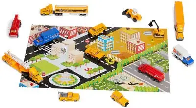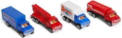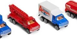 Alex’s Garage Lekesett Lastebiler inneholder 14 ulike kjøretøy. Her er alt for den bilinteresserte, alt fra store lastebiler, heisekraner og mindre kravemaskiner, hjullastere og redningsbiler.Anbefalt alder: Fra 3 år.Mål: 50 x 4,5 x 33 cm.Skala: 1:72Material: Plast.