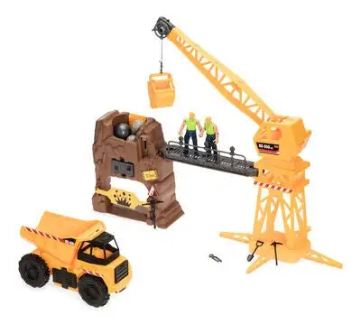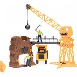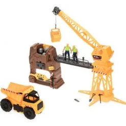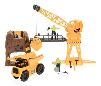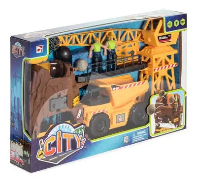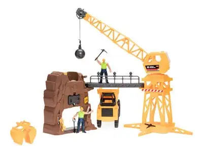 Med dette heftige byggesettet kommer du til å få masse moro! Du får en stor løftekran, en lastebil med lasteplan, to figurer og masse tilbehør. Hjelp figurene å bygge et hus eller løfte store steiner med løftekranens praktiske gripeklo. Tøffe lydeffekter som aktiveres når du trykker på knappen på siden. Hva venter du på – sett i gang og bygg, kun fantasien setter grenser!Anbefalt alder: Fra 3 år.