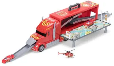 En supermorsom brannlastebil fra Alex’s Garage. La bilen din rulle ned skliene som går gjennom bakdelen eller panseret på lastebilen. Pakk sammen lastebilen og bær den med deg hvor du vil. Med to biler og et helikopter i tillegg er denne leken helt ypperlig!Anbefalt alder: 3 år +. Mål: 54,5 x 22,8 x 11,5 cm.Materiale: ABS-plast.