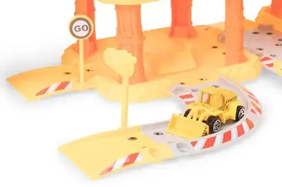 En supermorsom byggeplass fra Alex’s Garage. La bilen din rulle ned rampene eller kjør opp til de forskjellige etasjene. Med byggeplassen får du to biler og et helikopter. Anbefalt alder: 3 år +. Mål forpakning: 42 x 32 x 7 cm.Materiale: plast.