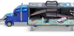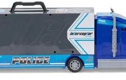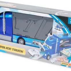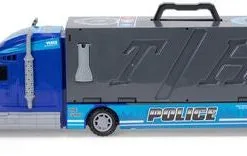 En supermorsom politilastebil fra Alex’s Garage. La bilen din rulle ned skliene som går gjennom bakdelen eller panseret på lastebilen. Pakk sammen lastebilen og bær den med deg hvor du vil. Med to biler og et helikopter i tillegg er denne leken helt ypperlig!Anbefalt alder: 3 år +. Mål: 54,5 x 22,8 x 11,5 cm.Materiale: ABS-plast.