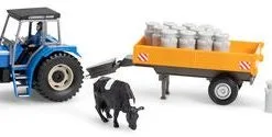 Et sett med traktor og henger fra Alex’s Garage. Inneholder dessuten en fører, melkekanner og en ku. Hent melken, last det på hengeren og kjør av gårde til leveringsplassen!Anbefalt alder: Fra 3 år.