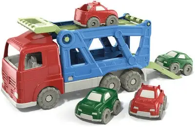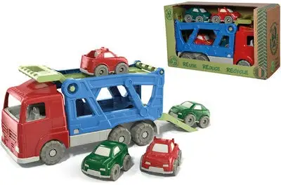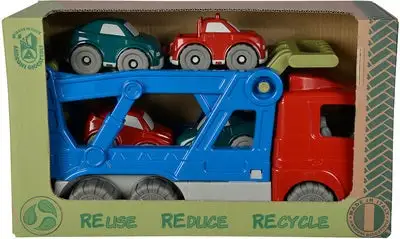 Flerfarget lastebil fra Androni i resirkulert plast med fire mindre biler. – CE-merket– Anbefalt alder: Fra 12 måneder