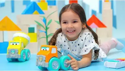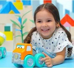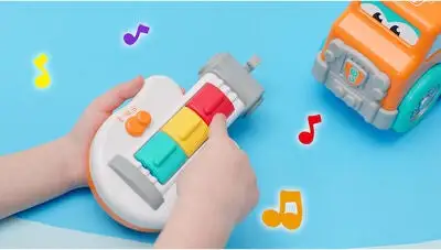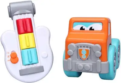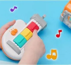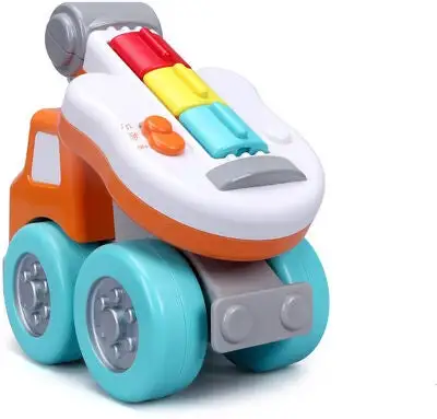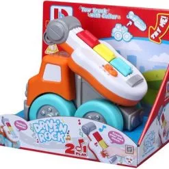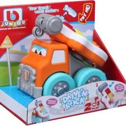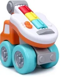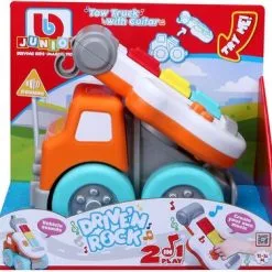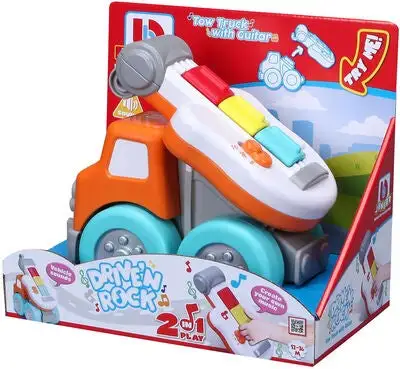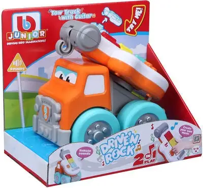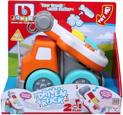 Kjempemorsom kranbil fra BB Junior med en innebygd lekegitar. Instrumentet har to ulike spilleinnstillinger: innspilte melodier eller improvisasjonsmodus. Perfekt for den lille musikeren. – CE-merket. – Anbefalt alder: fra 12 måneder til 3 år. – Batteri: 2 x AAA (inkludert).