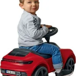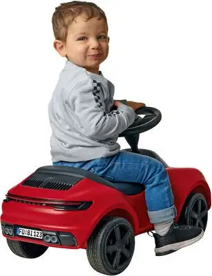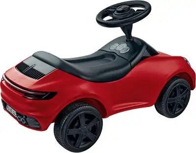 Den heftige Porsche 911 fra BIG Bobby er en løpebil medPersche-emblem, ekstra brede dekk og tøysete i høy kvalitet. Sett bilen i gang ved å løpe, og plasser deretter føttene på siden når du har fått godt nok med fart. Styr med det svarte rattet og bruk tuten så alle kan høre når du kjører forbi!Anbefalt alder: fra 1 år.
