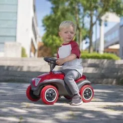 BIGs Bobby Car Deluxe er en heftig versjon av den klassiske og morsomme sparkebilen som har vert favorittleketøyet til mange barn i flere tiår. Gåbilen er tilvirket i robust plast for å være både sikker og tåle masse lek og gøy. Denne deluxe-versjonen har dessuten et nydelig design samt frontlys av LED-lamper sog batteridrevet horn og motorlyd. Hjulene er designet for å være ekstra stille og det myke setet kan tas av for vask. Løp i gang bilen med føttene og plasser dem så på siden for ekstra støtte når du har fått tilstrekkelig med fart. Styr med rattet og bruk hornet sånn at alle kan høre når du kjører forbi!Kompletter gjerne lekebilen med en tilhenger sånn at du kan ta med dine leker. Skap herlige barndomsminner og se fram imot mange morsomme lekestunder med denne fantastiske gåbilen!Anbefalt alder: 12 måneder +.Maksvekt: 50 kg.Mål: 58 x 30 x 38 cm.Setehøyde: 20 cm.Materiale: Plast.Batterikrav: 3 stk AAA-batterier (inngår ikke), 2 stk LR44-batterier (inngår).Farge: Rød, grå.