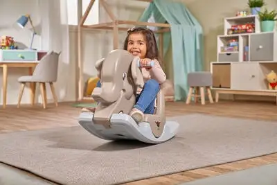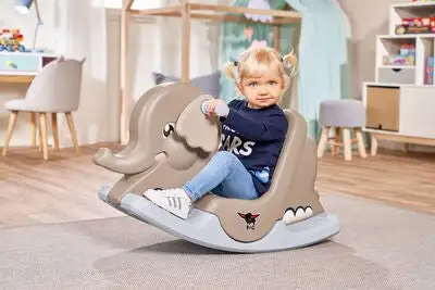 En søt elefant fra BIG med ergonomisk sete og brede fotsteg. Hold deg i fast i elefantens ører, og gyng i vei ut på eventyr! Anbefalt alder: fra 1 år.