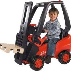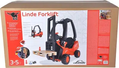 Linde, en kul rød og svart gaffeltruck fra BIG. Gaffeltrucken har funksjoner som løfteutstyr, lastekapasitet på 50 kg, et justerbart sete og sklisikre pedaler. En pall er også inkludert i settet. Ta med deg din nye BIG Linde ut på eventyr!Anbefalt alder: fra 3 år.