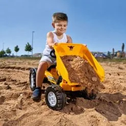 Jim fra BIG, en kul dumper med mange funksjoner. Den har et 3-eiket ratt med et mekanisk horn, tilhengerkobling, tipp med lastevolum på 6 liter og en spake for enkel tipping. Ta med deg din nye BIG Jim på eventyr!Anbefalt alder: fra 3 år.