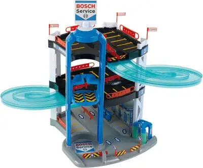 Bosch carpark med tre etasjer er et morsomt og stabilt sett for alle bilentusiaster. Bilgarasjen har foruten parkeringsplasser to racingramper, en heis, en bensinpumpe og en bilvask lengst nede. To biler medfølger også. Et underholdende sett med fart og spenning!Anbefalt alder: 4 år +.Mål: 55 x 55 x 52 cm.Materiale: Plast.