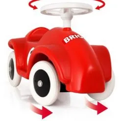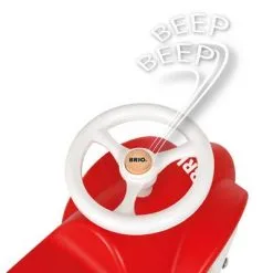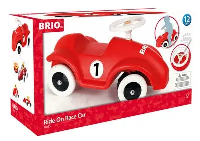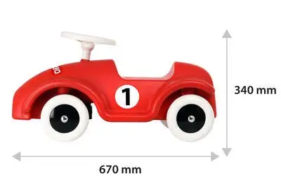 Gåbil Race Car i klassisk sportslig design fra Brio. Bruk benene til å dytte til fart når du sitter på bilen. Om du støter på på trege søndagsbilister eller andre som går i veien kan du bruke bilens tre-tute for å få de til å flytte på seg. Med det stødige rattet kan du manøvrere bilen som en ordentlig racerbil-sjåfør. Anbefalt alder: Fra 12 måneder.