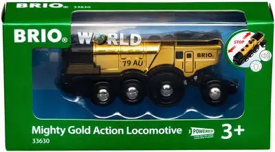 Brio Mighty Action-Lok Gull imponerer virkelig når det suser langs sporet. Dette batteridrevne leketoget er et av de sterkeste i BRIO World. Det kan kjøres fremover og bakover, med tilhørende lys og lyd. Det har også en bryter på toppen, slik at du kan bruke toget uten batteri og koble det fra for frirulling. Dette leketoget, i en flott retrostil, hjelper barn med å utvikle seg ved å fremme logisk tenkning og forbedre finmotorikken. Laget av høykvalitets plast, med fine metalldetaljer. Et perfekt supplement til BRIO World togspor, som vokser og utvikler seg sammen med barna. Å leke med tog hjelper barn å forstå og lære om miljøet i hverdagen på en morsom måte, og utvikler samtidig finmotorikken.Anbefalt alder: fra 3 år.