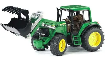 En heftig traktor fra Bruder i klassisk John Deere-modell, utstyrt med en frontlaster. Panseret kan åpnes for å ta en titt på motoren! En detaljert leke som passer like bra som modell i bokhyllen som til å leke med.Anbefalt alder: fra 3 år.Mål: L38,5 x B16,5 x H17,7 cm.Skala: 1:6.Materiale: plast.