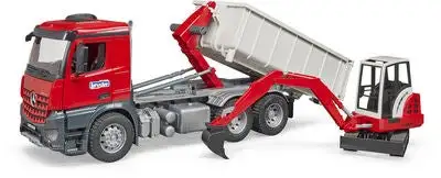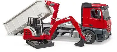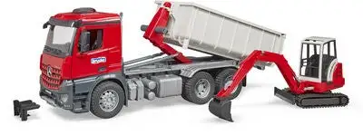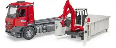 Bruder MB Arocs Lastebil Med Rullecontainer Med Schaeff Gravemaskin