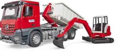 Lastebilen Mercedes Benz Arroc, en virkelighetstro arbeidsbil fra Bruder. Settet inneholder også en minigraver som du kan bruke til å flytte utgravde masser opp på plattformen. Kjøretøyene er laget av plast, med flere morsomme detaljer og funksjoner. La barnet ditt lære om våre store maskiner og deres bruksområder i en liten skala!Anbefalt alder: Fra 3 år.