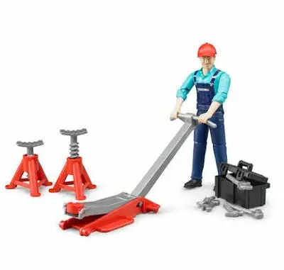 Et sett fra Bruder med verktøy til et ordentlig verksted. Så fort det oppstår problemer med maskinen eller bilen din kan håndverkeren hjelpe til! En morsom leke som passer like bra som modell i bokhyllen som å leke med! Anbefalt alder: Fra 4 år. Mål: 17 x 10,7 x 8 cm