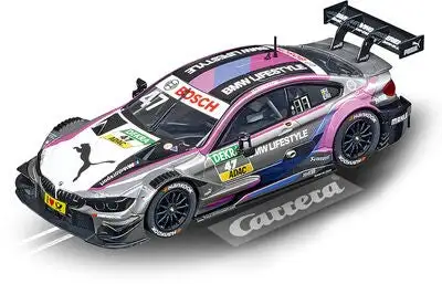 Carrera-bilen i skala 1:32 er slående lik forbildet sitt, og med BMW- og DTM-lisensen har man tenkt på alle detaljer. Du kan stole på at BMW M4 kan kjøre nattrace, siden den har både framlys, bremse- og baklys. Bilen passer like bra til nybegynnere som til profesjonelle racerførere, du kan nemlig stille inn hastighet og bremseffekt individuelt i ti nivåer for å finne rett nivå for nettopp deg. Med den digitale kontrollen spiller det ingen rolle hvor du er på banen, du har alltid full oversikt. – BMW M4, German Touring Car Championship- DIGITAL 132- Med lyselilla aksenter-1:32 skala-Fra 8 år