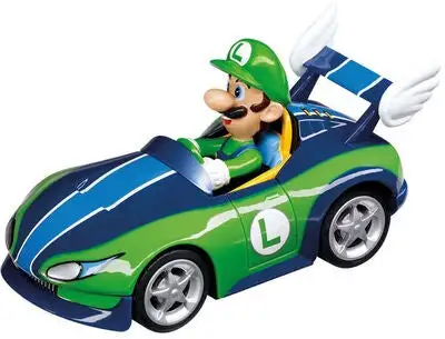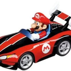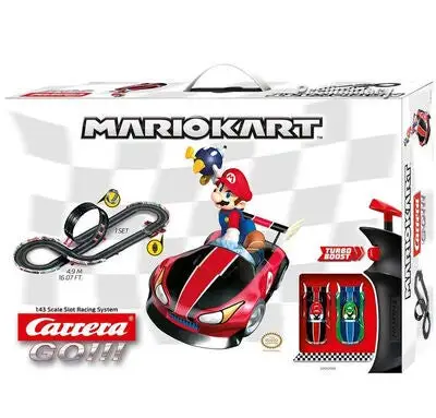Nintendo Mario Kart Wii bilbane fra Carrera med et lekent design. Den har to velkjente biler og en turbofunksjon. Bilbanen har en spennende loop og raske svinger. Perfekt for mange timer med moro. – Bilbanen er 4,9 meter lang. – CE-merket. – Anbefalt alder: fra 6 år.