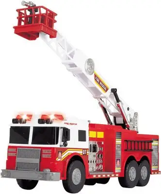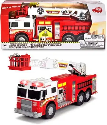 En morsom lekebrannbil med spennende funksjoner, fra Dickie Toys. Brannbilen har frihjul, en forlengningsbar stige og sidepaneler som kan åpnes. Den er utstyrt med heftige lyd- og lyseffekter!Anbefalt alder: fra 3 år.