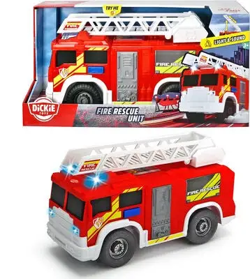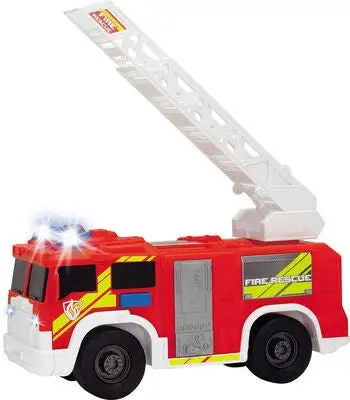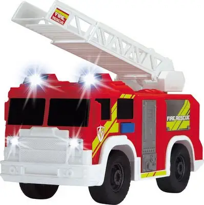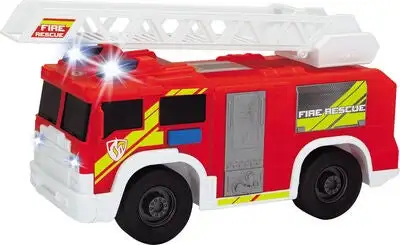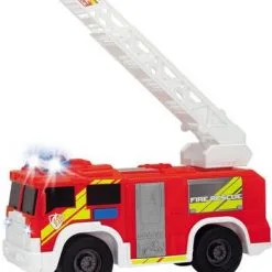 Detaljert brannbil fra Dickie Toys med en forlengbar stige. Den har lyder og blinkende lys. Perfekt for mange timers morsom lek. – CE-merket. – Anbefalt alder: fra 3 år. – plast. – Batteri: 2 AA (inkludert).