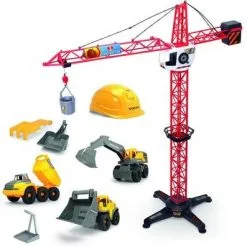 Funksjonsspekket byggesett fra Dickie Toys med en mekanisk, 1 m kran med en manuell løftemekanisme. Det har tre medfølgende kjøretøy og en hjelm. Byggesettet har to medfølgende sandleker. Perfekt for å øve opp barnets fantasi og finmotorikk. – Roterende kran. – Tre kjøretøy medfølger. – En spade og rake medfølger. – CE-merket. – Anbefalt alder: fra 3 år.