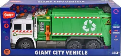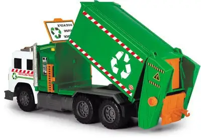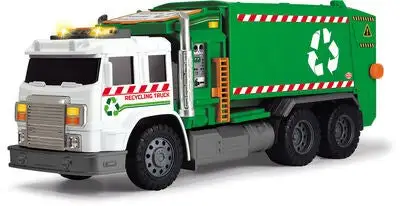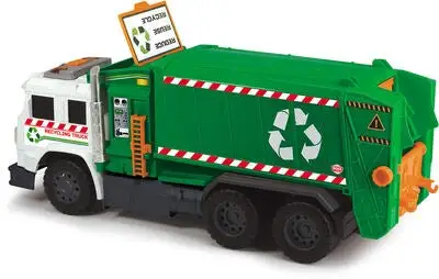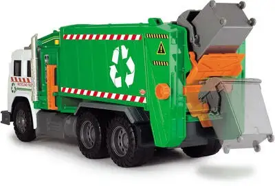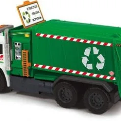 Dette er en gjenvinningsbil fra Dickie Toys. Bilen har fire hjul, lys og lyd. Dessuten har den en manuell liftordning, en bakluke som kan åpnes, et oppbevaringsrom foran og en søppeltønne. Anbefalt alder: fra 3 år.