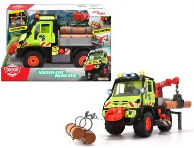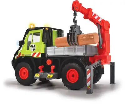 Unimog er en traktorbil fra Dickie Toys. Med sin batteridrevne vinsj og kranarm kan den løfte opp stokker. Unimog er også utstyrt med frihjul, lys, lyd, interiør, dører som kan åpnes, bevegelige aksler, batteridreven vinsj og kranarm med kontroll. Tilbehør er inkludert. Ta med traktorbilen din ut i skogen og ta med falne trær!Anbefalt alder: fra 3 år.