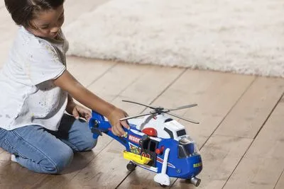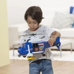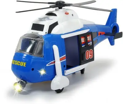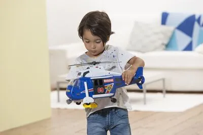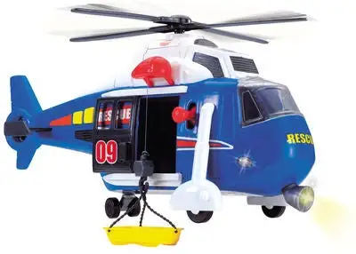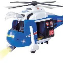 Et heftig redningshelikopter fra Dickie Toys, med lyd, lys og bevegelige deler. Fly til ulykkesplassen med helikopteret, heis ned båren og fly av sted til sikkerhet. Anbefalt alder: Fra 3 år.