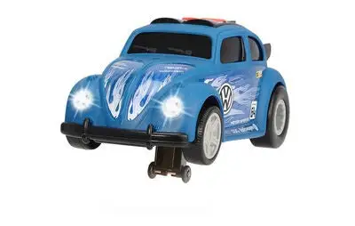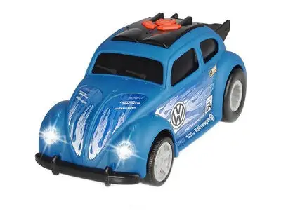 En tøff Volkswagen Beetle racerbil fra Dickie Toys! Denne kraftpakken er utstyrt med motor, og kan kjøre framover med hjelp av et knappetrykk. Bilen kan steile og deretter kjøre av gårde, og har innebygget lys- og lydfunksjon. Testbatterier inngår. Anbefalt alder: Fra 3 år.