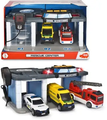 En norsk redningsstasjon fra Dickie Toys, utstyrt med mikrofon, lys og lyd inklusive en norsk politibil, brannbil og ambulanse med frihjul. Begi deg ut på utrykningsoppdrag med de ulike redningsbilene og hold lekebyen din trygg!Anbefalt alder: fra 3 år.