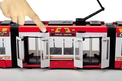 Trikk fra Dickie Toys med et klassisk design med fine, realistiske detaljer. Den har dører som kan åpnes og frihjul. Perfekt for timer av fantasifull lek. – CE-merket. – Anbefalt alder: fra 3 år.