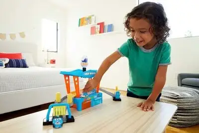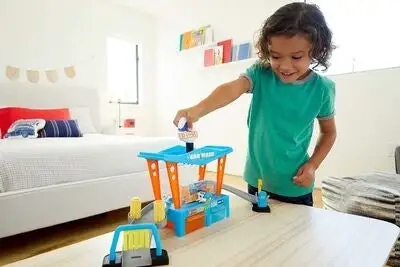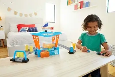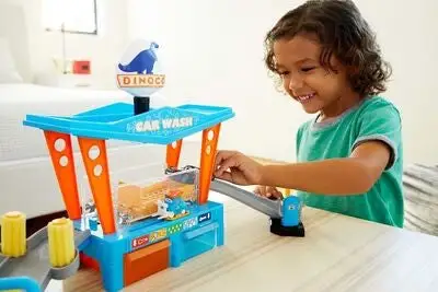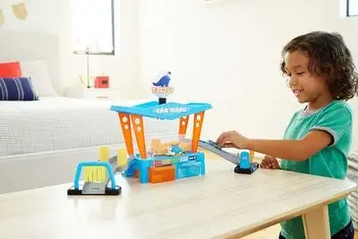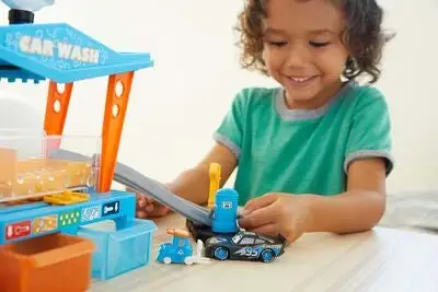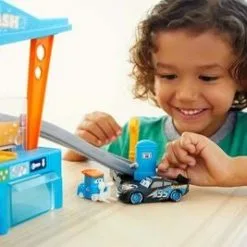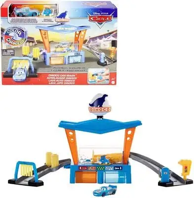 Et morsomt lekesett fra Disneys Biler. Dette morsomme lekesettet representerer en bilvask der alle Disneys biler kan komme og bli skinnende rene. Fyll Dinoco-skiltet med varmt vann og vask Lynet McQueen for å få lakken til å skifte farge til svart. Ved å vaske ham i kaldt vann blir fargen gjenopprettet. To biler er inkludert. Et morsomt leketøy for alle Biler-fans!Anbefalt alder: Fra 4 år.