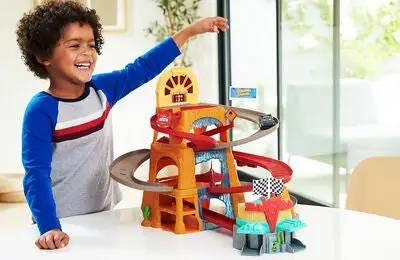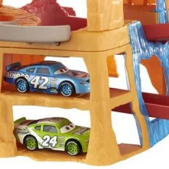 Lekesettet Radiator Springs Speedway er en bilbane fra Disney Cars. De slingrende veiene går fra toppen av banen ved Wheel Well Motel, og ned til mållinja ved Flo’s V8 Café. Sett bilene Lightning McQueen og Jackson Storm på startposisjonene, og trykk på toppen av bilbanen for å sette fart på bilene. Den som raskest kommer ned til mål vinner!Nede ved mållinja finnes en bensinpumpe og parkering til bilene etter racet.Anbefalt alder: fra 4 år.