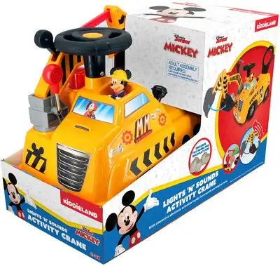 Gåbil fra Disney Mikke Mus med et lekent krandesign. Den har en bevegelig kranarm og et ratt. Gåbilen har lekesteiner til morsomt rollespill, lys- og lydeffekter og et instrumentbrett med en spak og forskjellige, underholdende knapper. Perfekt for timer av fantasifull lek. – CE-merket. – Maksimal vekt: 25 kg. – Anbefalt alder: fra 12 måneder. – Batteri: 2x AA (ikke inkludert).