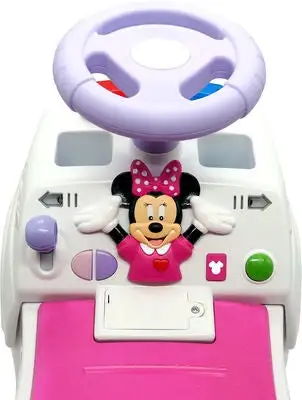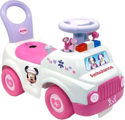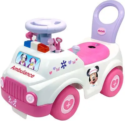 Gåbil-ambulanse fra Disney Minni Mus med et lekent design. Den har et spennende instrumentbrett med morsomme knapper og lyd- og lyseffekter og medisinske tilbehør til morsomt rollespill med et termometer, en pinsett, en skalpell og et stetoskop med autentiske lyder av hjertelag. Perfekt for mange timer med moro. – CE-merket. – Anbefalt alder: fra 12 måneder. – Batteri: 2x AA (ikke inkludert).