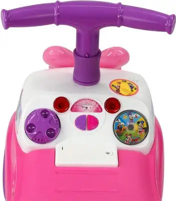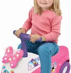 Gåbil fra Disney Minni Mus med et lekent design. Den har et sammenleggbart styre og en stor sløyfe foran med lyseffekter. Gåbilen har et spennende instrumentbrett med morsomme knapper og lydeffekter. Perfekt for mange timer med moro. – CE-merket. – Anbefalt alder: fra 12 måneder. – Batteri: 2x AA (ikke inkludert).