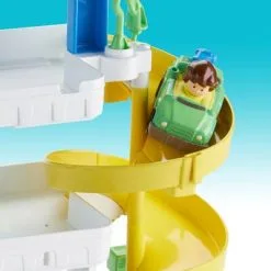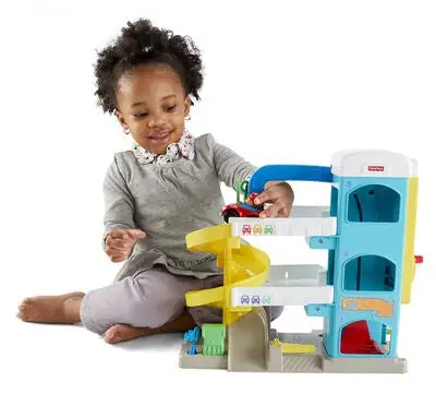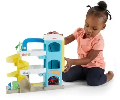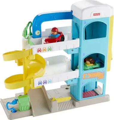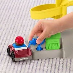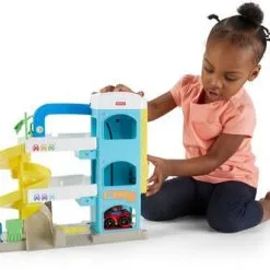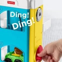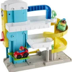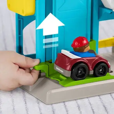 Et morsomt parkeringshus fra Fisher-Price. Her kan man fylle bensin, reparere biler, og kjøre oppover i de tre etasjene – eller ta heisen! Et supert tilbehør til lekebilene!Anbefalt alder: 1,5 – 5 år.