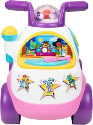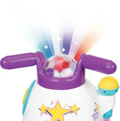 Movin N Groovin gåbil fra Fisher-Price, med et fargerikt design. Den har et robust styre og ekstra brede hjul. Gåbilen har en avtagbar, ekko-mikrofon og en diskokule med blinkende lys. Perfekt for å trene barnets grovmotorikk og øye-hånd-koordinasjon. – CE-merket. – Maksimal vekt: 20 kg. – Anbefalt alder: fra 12 måneder. – Batteri: 2 x AAA (inkludert).
