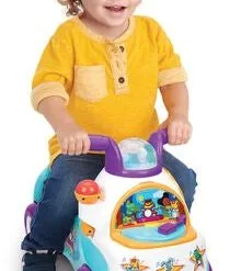 Movin N Groovin gåbil fra Fisher-Price, med et fargerikt design. Den har et robust styre og ekstra brede hjul. Gåbilen har en avtagbar, ekko-mikrofon og en diskokule med blinkende lys. Perfekt for å trene barnets grovmotorikk og øye-hånd-koordinasjon. – CE-merket. – Maksimal vekt: 20 kg. – Anbefalt alder: fra 12 måneder. – Batteri: 2 x AAA (inkludert).