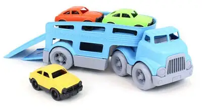 En gøyal lastebil med tre medfølgende småbiler, fra Green Toys. Både biltransporten og bilene er laget i gjenvunnet plast. Lekene kan brukes både innendørs og utendørs. Anbefalt alder: fra 3 år.
