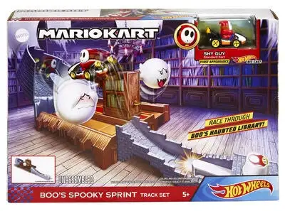En bilbane fra Hot Wheels, inspirert av det klassiske Nintendo-spillet Mario Kart. Settet inneholder en bil med en figur og en bilbane med to Boo-spøkelser. Kjør fort og hopp over hindringer med bilen din – akkurat som i spillet! Du kan kombinere bilbanen med andre biler og bilbaner fra Hot Wheels (kjøpes separat).Anbefalt alder: fra 5 år.