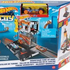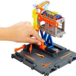 City Downtown reparasjonsstasjon fra Hot Wheels med kule funksjoner. Kjør opp og yt service til kjøretøyet ditt. Beveg spaken på sakseløfteren manuelt for å utføre vedlikehold før du kjører av plattformen og ut igjen på banen. Før du drar, sørg for at du fyller drivstoff og kontrollerer dekkene. Settet inkluderer 1 Hot Wheels lekebil. Du kan enkelt koble garasjen til andre Hot Wheels City-lekesett. – CE-merket. – Ikke egnet for barn under 3 år, på grunn av små deler. – Anbefalt alder: fra 4 år.