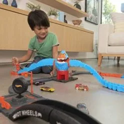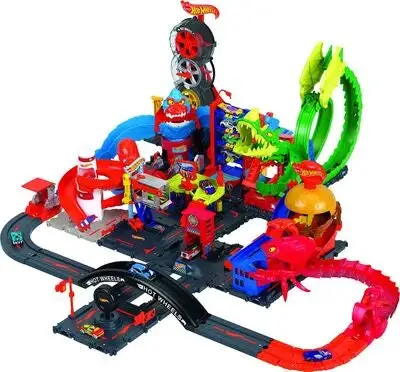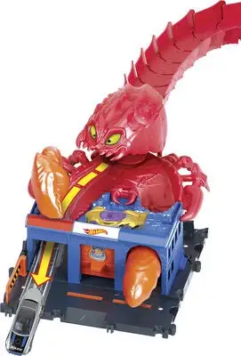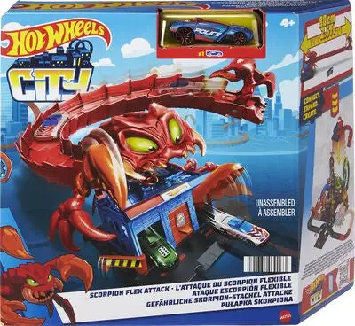 Kjempekul City Nemesis Lab Scorpion Police Station bilbane fra HotWheels i plast med en skummel skorpion. Den har en politistasjon med en bil. Med dette gøyale settet blir lekestunden ekstra morsom og fantasifull! – Bilbane: 80 cm– CE-merket– Anbefalt alder: fra 4 til 8 år