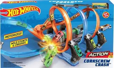 Kjempekul Action Corkscre bilbane fra HotWheels. Perfekt for mange timers morsom lek. – Anbefalt alder: Fra 5 år