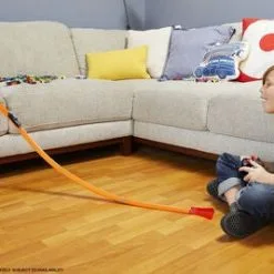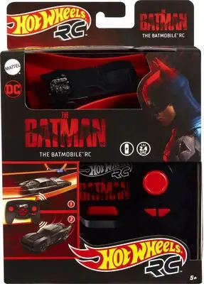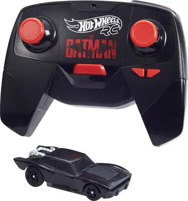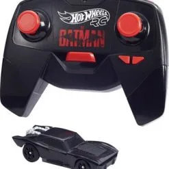 Radiostyrt, ikonisk Batmobile 1:64 bil fra HotWheels med en trådløs håndkontroll, perfekt for kule og fartsfylte leker. Den har en lettkombinert, medfølgende rampe og en USB-kabel. – CE-merket – Ikke egnet for barn under 3 år – Anbefalt alder: fra 5 år