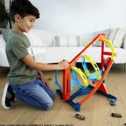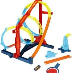 Høy Track Builder Corkscrew Twist Kit bilbane fra HotWheels med en medfølgende bil. Den har lettkombinerte spor med tre kule corkscrew twister og en launch seksjon, perfekt for kule og fartsfylte leker. Samle på alle delene i serien. – CE-merket – Anbefalt alder: fra 6 år