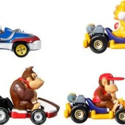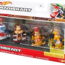 Kule Mario Kart Die-cast biler fra Hot Wheels for mange timers racing. Med ikoniske Mario Kart-karakterer som Mario, Yellow Yoshi, Donkey Kong og Diddy Kong. – 4-pack. – CE-merket. – Ikke egnet for barn under 3 år, på grunn av små deler. – Anbefalt alder: fra 3 til 12 år. – Plast.