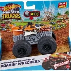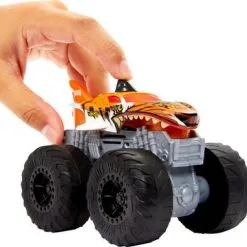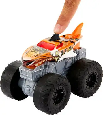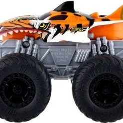 Kul Tiger Shark montertruck fra Hot Wheels med gigantiske hjul for ujevnt og vanskelig terreng. Tiger Shark monstertruck ruller over alle andre kjøretøy og hindringer og er bygget for ultimate krasjer. Perfekt for mange timers morsom lek. – CE-merket. – Anbefalt alder: fra 3 til 12 år. – Plast.